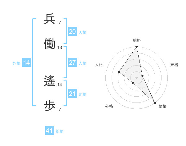 兵働 遙歩さんの総格は41画の5点!