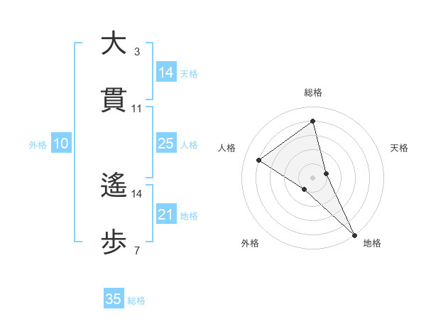 大貫 遙歩さんの総格は35画の4点!