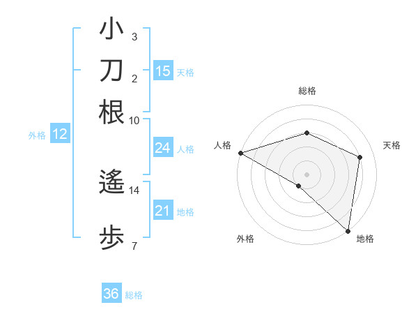 小刀根 遙歩さんの天格は15画の4点!