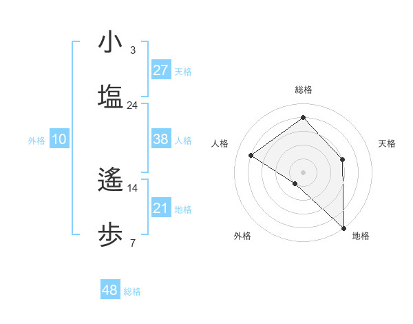 小塩 遙歩さんの総格は48画の4点!