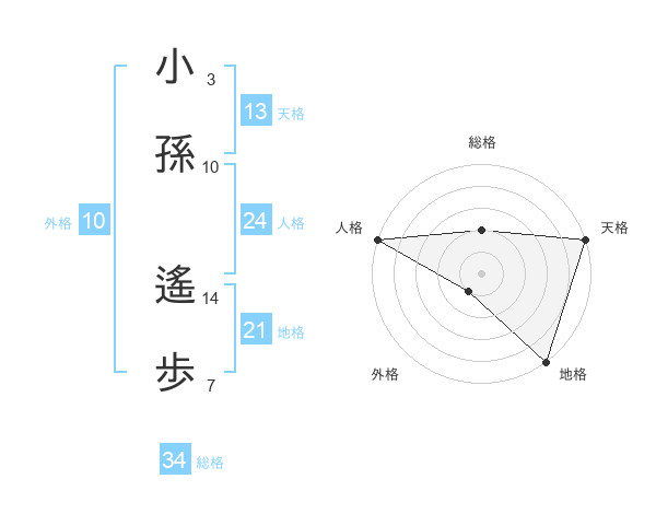 小孫 遙歩さんを姓名の画数から五運を鑑定