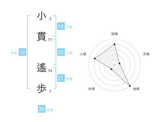 小貫 遙歩さんの総格は35画の4点!