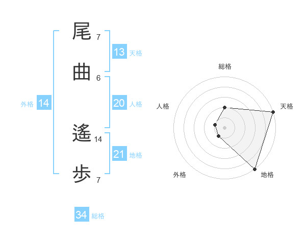 尾曲 遙歩さんを姓名の画数から五運を鑑定