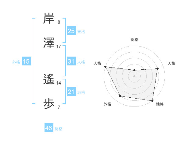 岸澤 遙歩さんの天格は25画の4点!