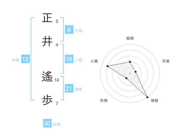 正井 遙歩さんの地格は21画の5点!