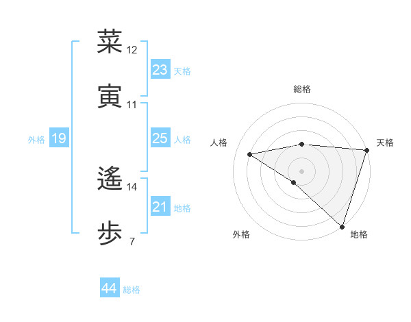 菜寅 遙歩さんを姓名の画数から五運を鑑定