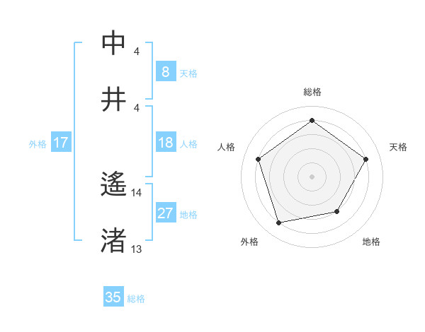 中井 遙渚さんを姓名の画数から五運を鑑定