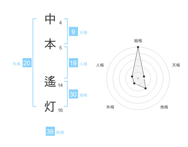中本 遙灯さんの総格は39画の5点!