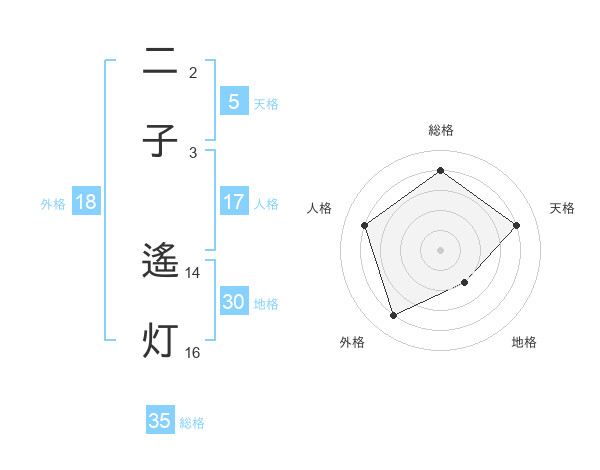 二子 遙灯さんを姓名の画数から五運を鑑定