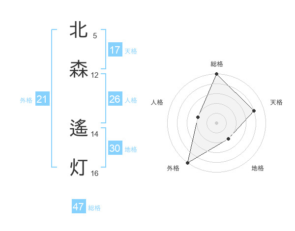 北森 遙灯さんを姓名の画数から五運を鑑定