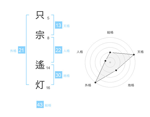 只宗 遙灯さんを姓名の画数から五運を鑑定