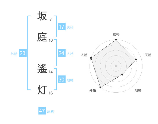 坂庭 遙灯さんの総格は47画の5点!