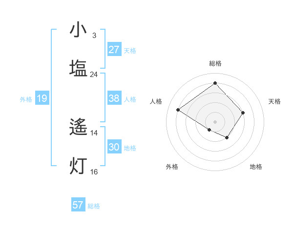 小塩 遙灯さんの総格は57画の4点!