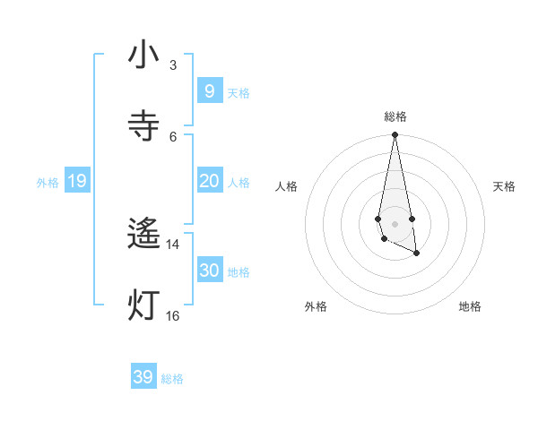 小寺 遙灯さんの総格は39画の5点!