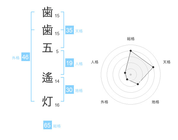 歯歯五 遙灯さんの総格は65画の4点!