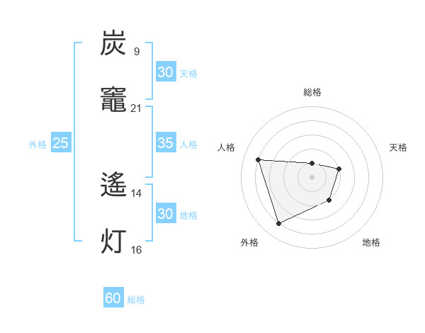 炭竈 遙灯さんを姓名の画数から五運を鑑定