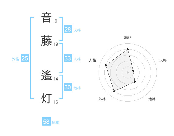 音藤 遙灯さんを姓名の画数から五運を鑑定