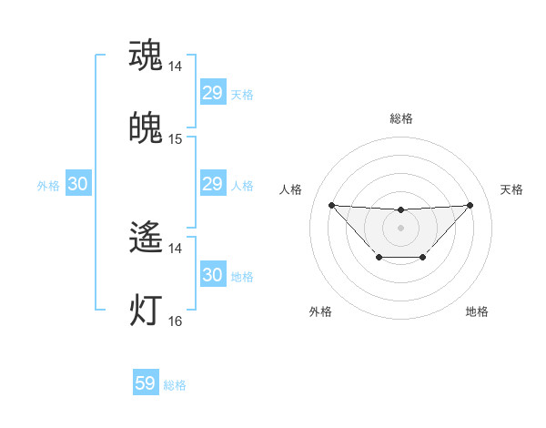 魂魄 遙灯さんの総格は59画の1点!