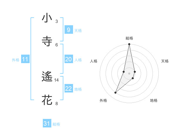 小寺 遙花さんを姓名の画数から五運を鑑定