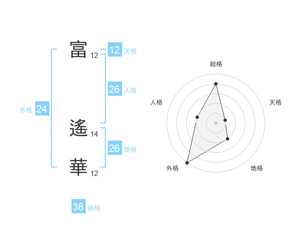 富 遙華さんの総格は38画の4点!