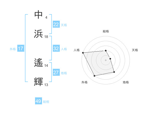 中浜 遙輝さんを姓名の画数から五運を鑑定