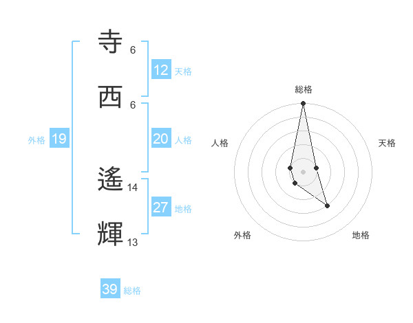 寺西 遙輝さんを姓名の画数から五運を鑑定