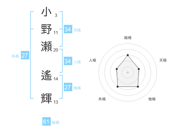 小野瀬 遙輝さんを姓名の画数から五運を鑑定