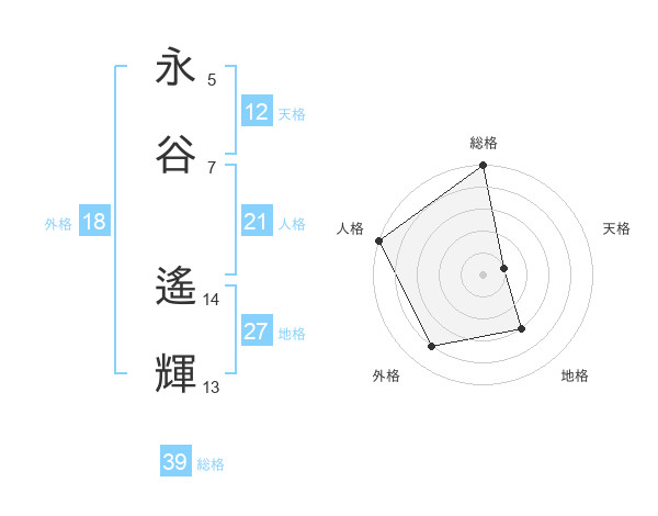 永谷 遙輝さんの総格は39画の5点!