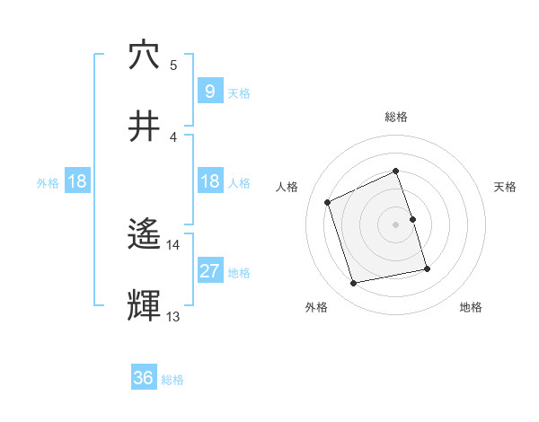 穴井 遙輝さんの地格は27画の3点!