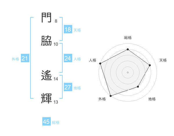 門脇 遙輝さんの総格は45画の4点!