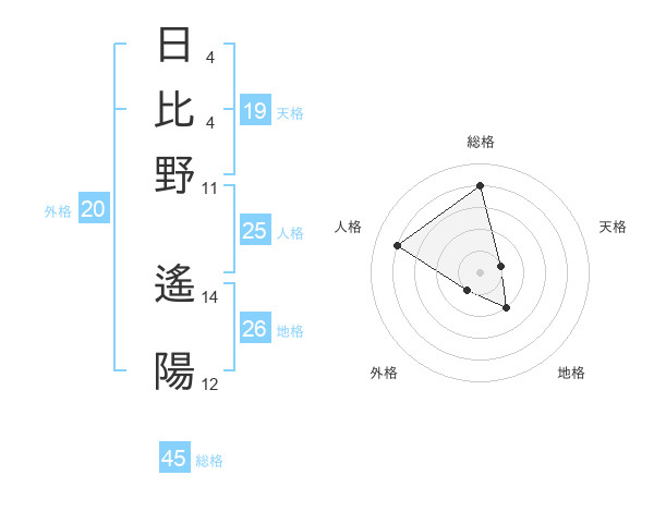 日比野 遙陽さんを姓名の画数から五運を鑑定