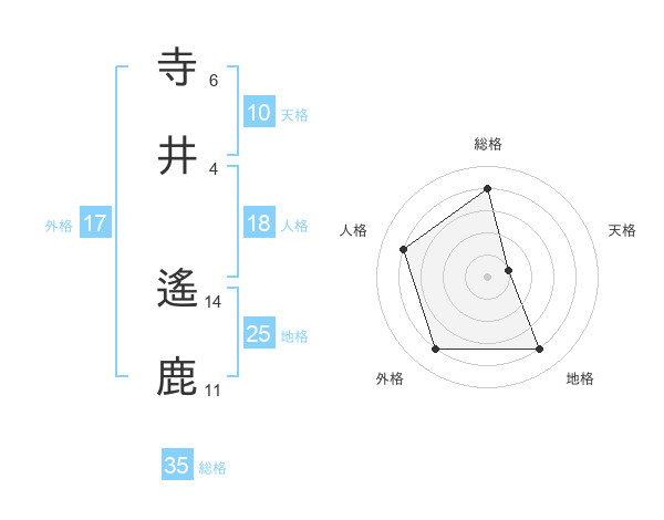 寺井 遙鹿さんの総格は35画の4点!