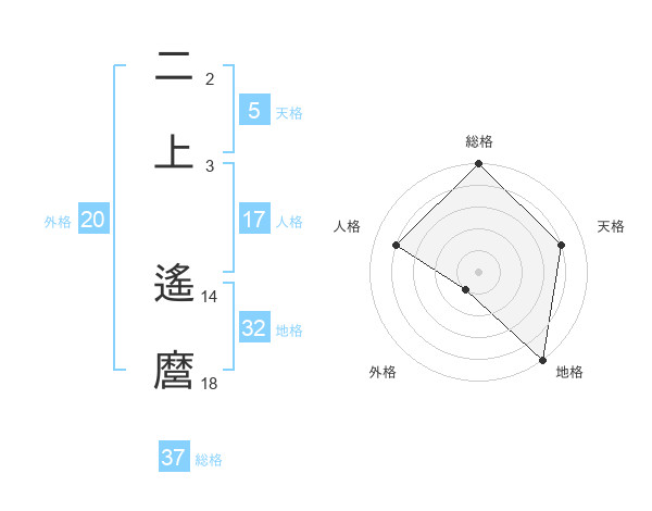 二上 遙麿さんの総格は37画の5点!