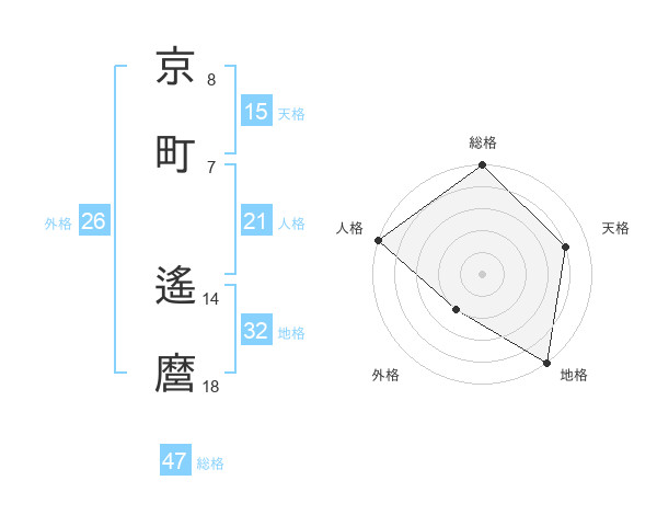 京町 遙麿さんの総格は47画の5点!