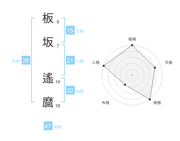 板坂 遙麿さんを姓名の画数から五運を鑑定