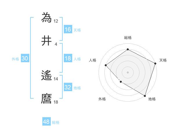為井 遙麿さんの総格は48画の4点!