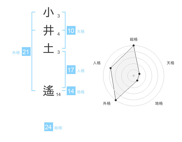 小井土 遙さんの外格は21画の5点!