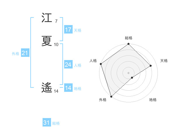 江夏 遙さんの総格は31画の5点!