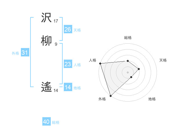 沢柳 遙さんを姓名の画数から五運を鑑定