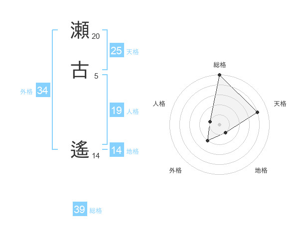 瀬古 遙さんの総格は39画の5点!