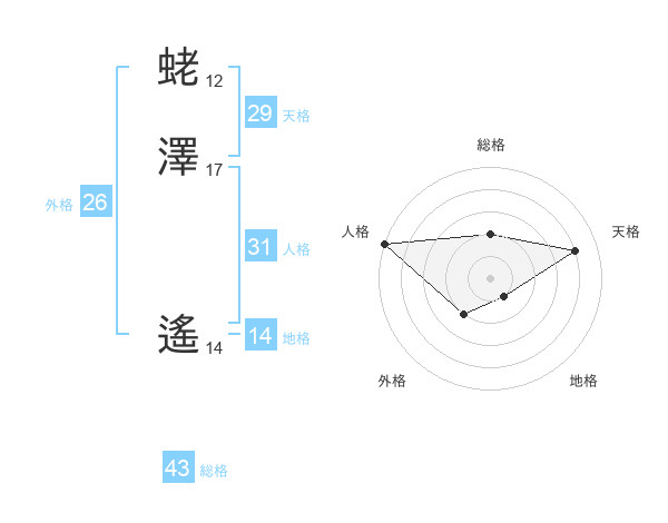 蛯澤 遙さんの人格は31画の5点!