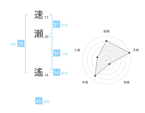 速瀬 遙さんの天格は31画の5点!