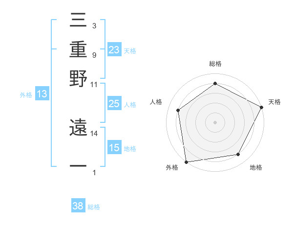 三重野 遠一さんを姓名の画数から五運を鑑定