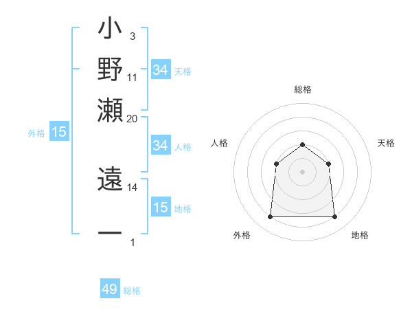 小野瀬 遠一さんの総格は49画の2点!