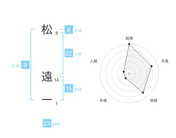 松 遠一さんの総格は23画の5点!