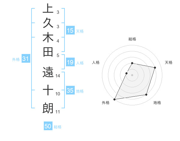 上久木田 遠十朗さんを姓名の画数から五運を鑑定