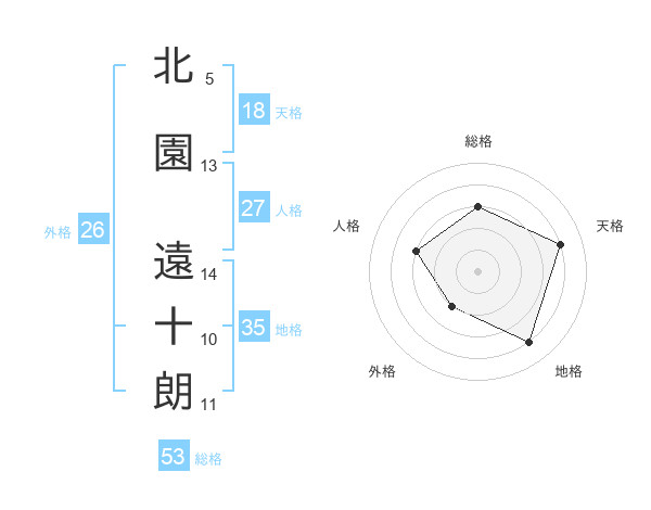 北園 遠十朗さんの総格は53画の3点!
