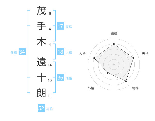 茂手木 遠十朗さんを姓名の画数から五運を鑑定
