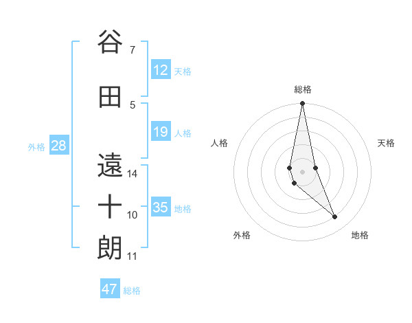 谷田 遠十朗さんを姓名の画数から五運を鑑定