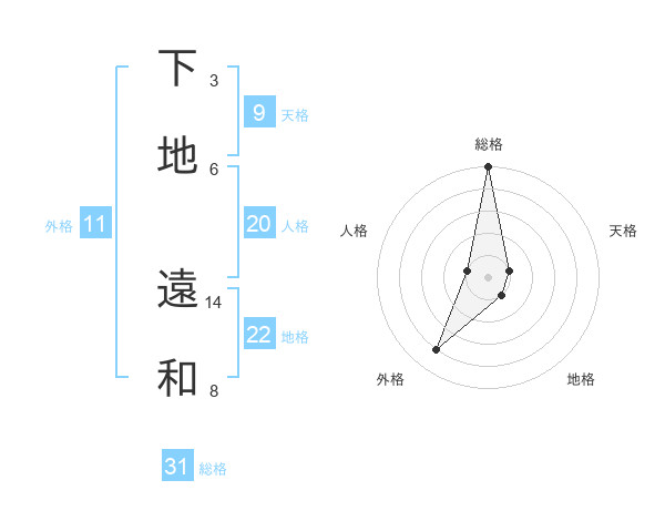本サイトの鑑定結果の正当性は保証しません。鑑定結果は参考程度にお読みください。実際の名づけにご利用される場合は、姓名判断についてご自身でよくお調べください。